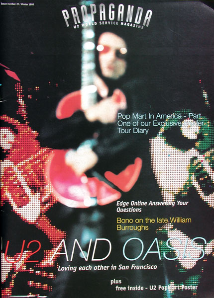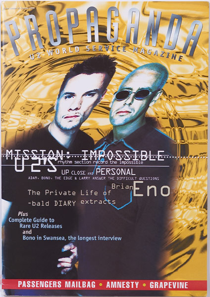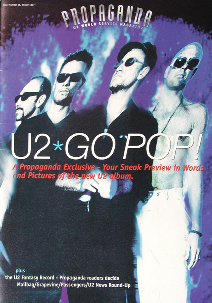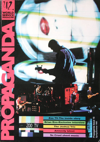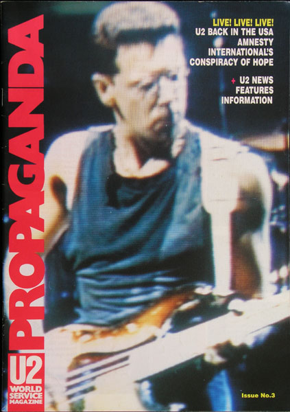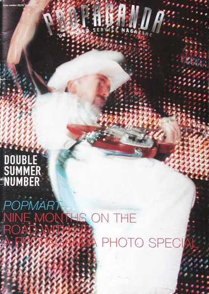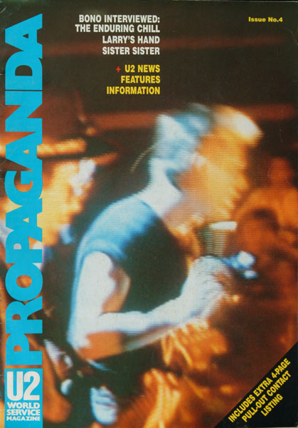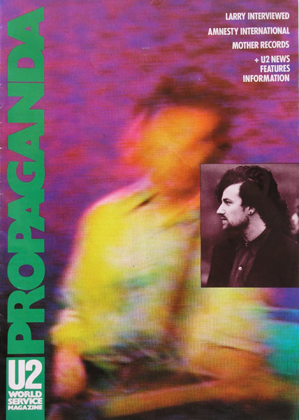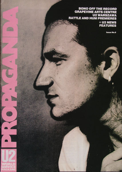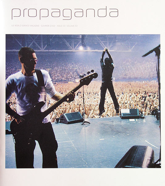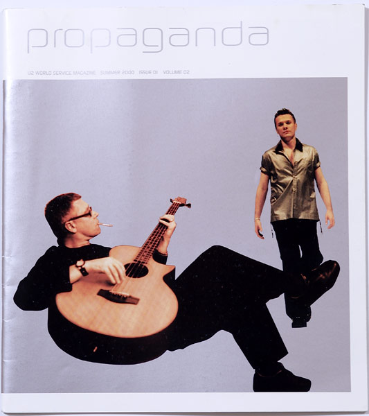 Propaganda was the second magazine issued by U2 following on the heels of U2 Magazine. The first issue was published in 1986, and issues continued up until 2000 as part of volume 01. In 2000, with the internet rapidly expanding, the band attempted to revisit the magazine launching volume 02, but the magazine never really took off, and Propaganda folded in 2002.