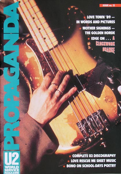| 1 | 12 | 1990 | News. Bringing It All Back Home. The Love Town Tour. A Clockwork Orange. New U2 Publications. Official U2 Discography. Amnesty. Bono on Poetry. Love Rescue Me Sheet Music. The Golden Horde. Fanzines. Grapevine.[Includes a template for a cassette cover, RADIO FREE U2 and includes merchandise insert]. [32pg] |