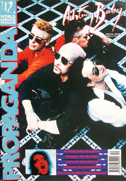 | 1 | 15 | 1991 | Achtung Baby Scrapbook. The making of The Fly Video. Achtung Baby Covered. Sheet Music of Until the End Of The World. Amnesty International. Mailbag, Readers Pics plus Fanzine Directory. Grapevine. Competition_free complete sets of album posters/and Dinky Trabants etc. Propaganda Back Issues and Subscription. [Plus Free Pull-Out Poster Calendar]. U2 Poster. [44pg] |