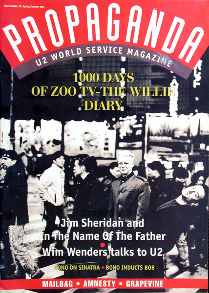 | 1 | 19 | 1994 | Bono on Sinatra at the Grammies. Bono on Marley. In The Name of Jim. Gavin Martin of the NME talks to Bono. Win Wenders an U2. 1000 Days of ZOO TV. Body Doubles. The Write Stuff. The Other Write Stuff. Fanzines/Grapevine & the Competition. [36pg] |