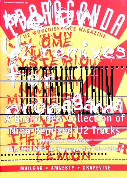 | 1 | 21 | 1995 | Track by Track. The Picking of Melon. Total Remix. Bono´s fan too. What´s Goin´On. Amnesty International, an History. Amnesty Cases. The Archive. Readers writes, Gripes & Fanzines. Grapevine. The PROPAGANDA Competition. [includes CD, Melon remixes for Propaganda]. [24pg] |