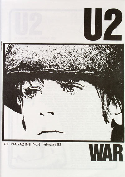 | 6 | ![]() | February 1983 | War Release. Some Quotes on “War” Happy Christmas Tour ’82 – War Breaks Out In England – concert reports from: Manchester Apollo – 02.12.82 / Leicester De Montfort Hall – 03.12.82 / Birmingham Odeon – 04.12.82 / London Lyceum Ballroom – 05.12.82 / London Hammersmith Palais – 06.12.82 U2 Pen-Pals / Swops and Trades Section U2 Vinyl Rarities U2 – 82 Competition results. Into The Heart – an interpretation. Out Of Control by Stuart Kinsey, Hitchin, Hearts. Letters. [Plus insert, Biography and Discography] [12pg + cover] | |