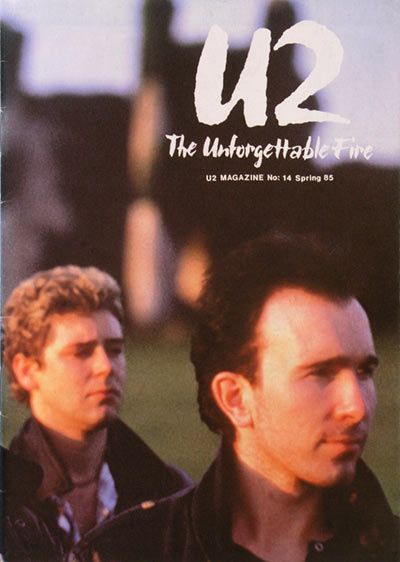 | 14 | ![]() | Spring 1985 | U2 News. The Producers: Steve Lillywhite. Tour Map, Boy in Europe ´81. Lyrics: The Unforgettable Fire / Promenade. B&W center poster – on 2 pages. Producers: Brian Eno. Competition results. Contact!. Letters. Adam Talks to Hugh Cornwell. The Unforgettable Quiz. [20pg + color cover] | |
